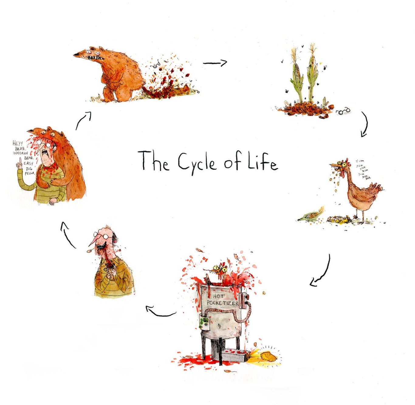 It irks me to no end to hear people say I’m ripping off Blake, or any number of my art heroes. Of course I am! I aspire to create great art and we stand on the shoulders of giants. I don’t want to stand directly on one giant’s shoulders though. Given that I hear it often enough, I suppose it’s worth acknowledging. I love Blake’s free line, silly subjects and the way he details his images with flecks of the pen and smudges of ink.